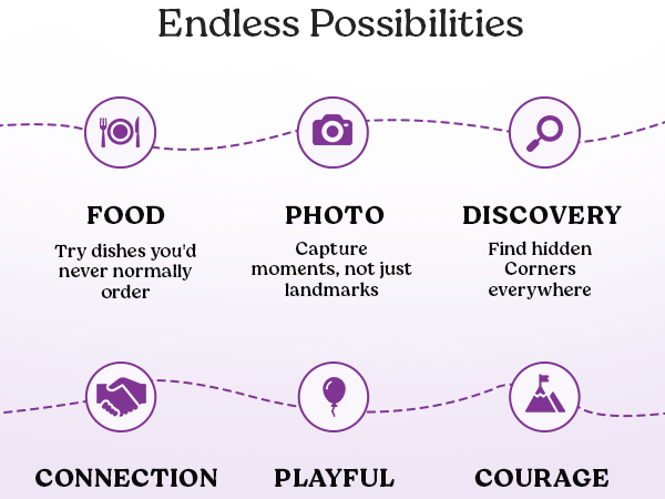 You travel together and want more laughs, more stories and fewer “what do you want to do?” debates. You’re up for playful challenges that shake things up.